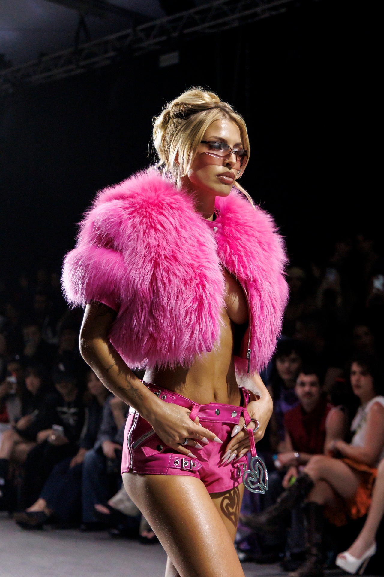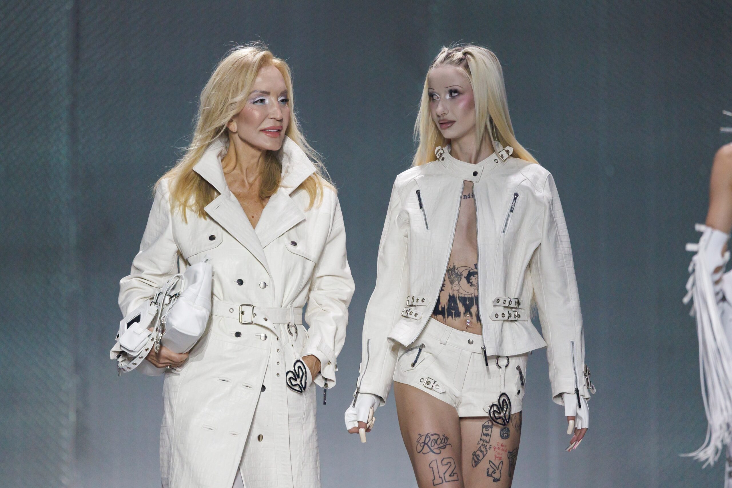 La firma, liderada por Domingo Rodríguez, ha construido su identidad precisamente en ese cruce de códigos. Y este décimo aniversario no fue una excepción. Sobre la pasarela, materiales contundentes, siluetas marcadas y una estética que bebe del universo pop y del imaginario queer reafirmaron su ADN, mientras la elección de sus protagonistas reforzaba un mensaje claro: la moda no entiende de generaciones, sino de actitud.