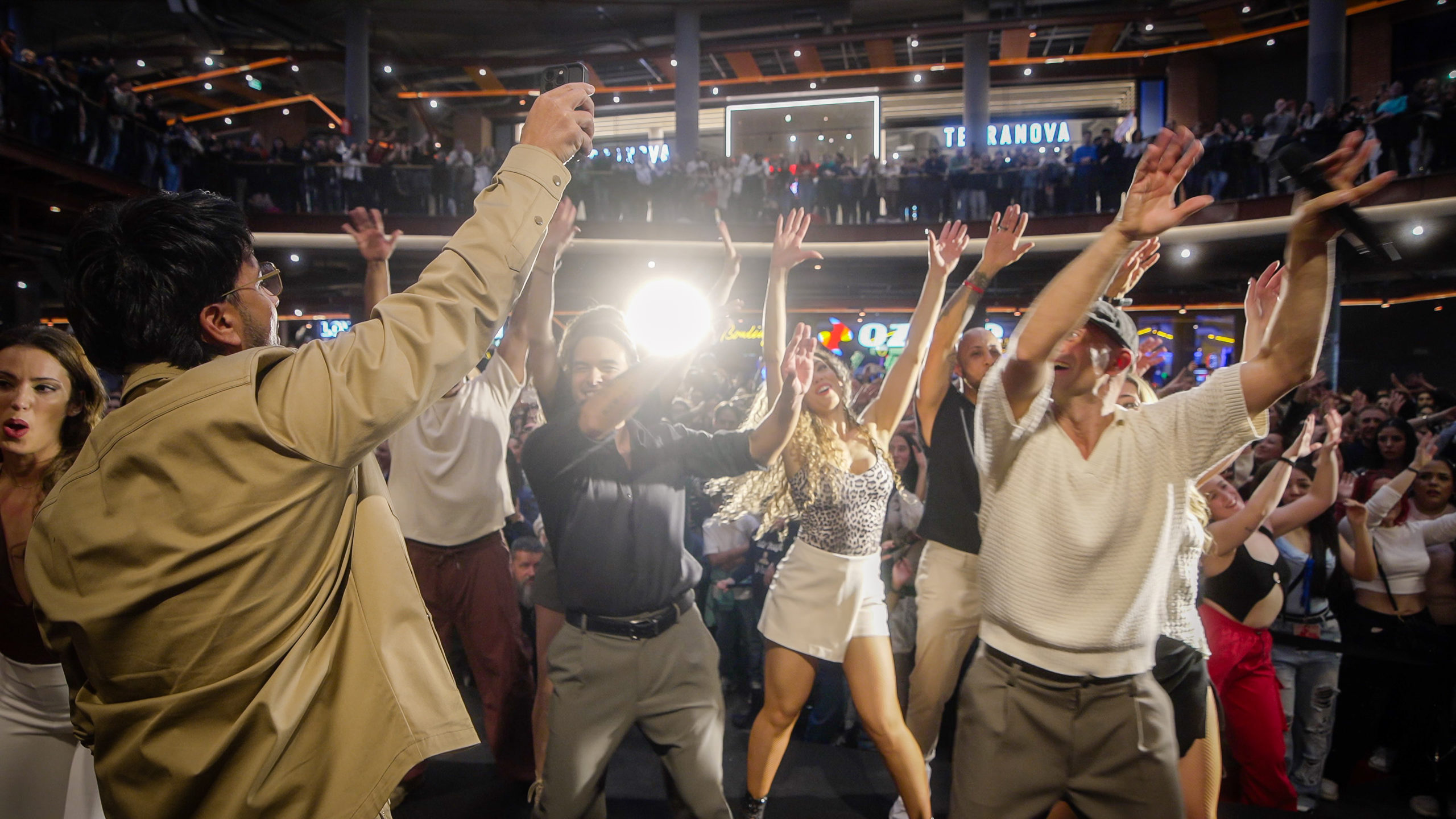 La llegada de Fonsi desató la euforia del público, que no tardó en corear y bailar “Cambiaré”, transformando el espacio en una auténtica y espontánea clase multitudinaria de salsa. Entre aplausos, sonrisas y móviles en alto, el artista se sumó a la celebración compartiendo pasos de baile, energía y cercanía con sus seguidores.