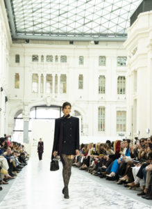 Los materiales jugaban también a ese contraste: tejidos nobles como el cashmere o la alpaca conviviendo con acabados más técnicos. Y todo armado con esa precisión que caracteriza a la casa, donde cada volumen está medido y cada corte tiene intención.