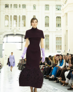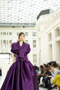 Desde los primeros looks quedó claro que la colección iba a moverse en un terreno muy suyo ese equilibrio entre lo escultórico y lo elegante pero con un giro inesperado. Volúmenes muy trabajados, siluetas que se despegan del cuerpo y capas que construyen la prenda casi como si fuera arquitectura. Hasta ahí, reconocible. Lo nuevo venía después.